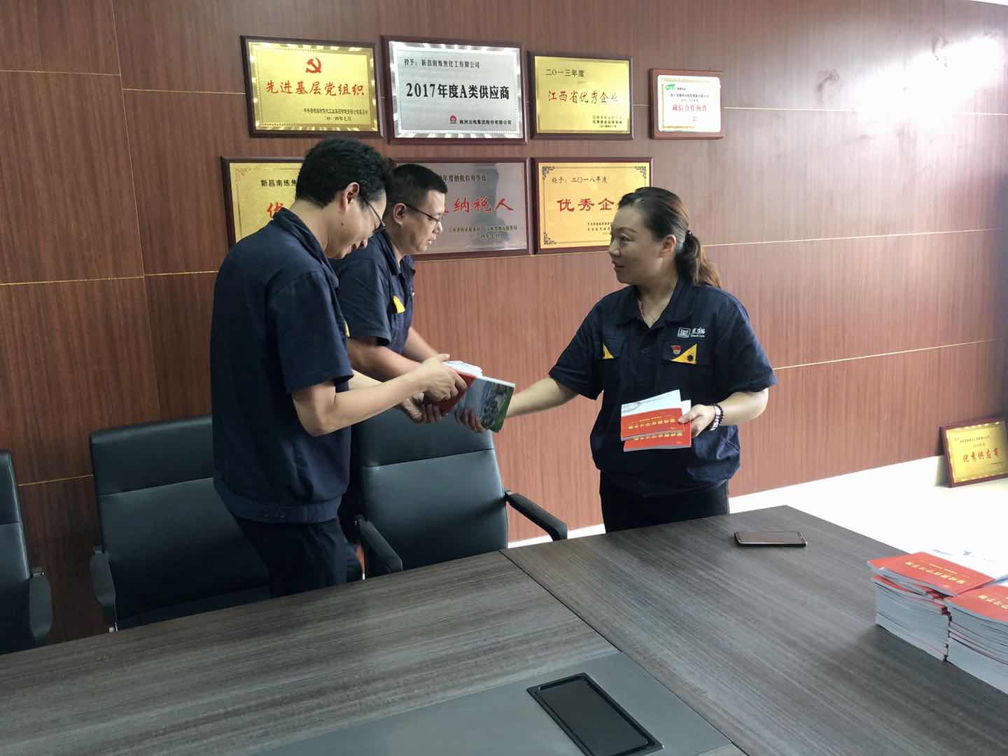 為加強景焦能源黨風(fēng)廉政建設(shè),做好廉政文化宣傳工作,強化廣大黨員干部的崗位廉政意識,增強預(yù)防腐敗的自覺性和抵御風(fēng)險的能力。7月21日,景焦能源黨總支書記、董事長朱明紅將百余冊《廉政教育學(xué)習(xí)手冊》發(fā)放至各位支部書記手上。